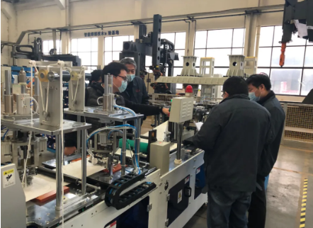 作為生產供貨單位,為了以最快速度擴大產能,八院鵬力科技集團黨支部組織成立“黨員突擊隊”,24小時無間歇輪班工作,帶頭加班加點投入專項任務研制生產。八院鵬力科技集團僅用11天就完成N95口罩機、平面口罩機和壓條機樣機研制,僅15天就實現了量產設備的連續(xù)供貨。科研團隊正確處理抓質量、促進度的關系,按照軍工產品質量要求,確保交付產品質量過硬。