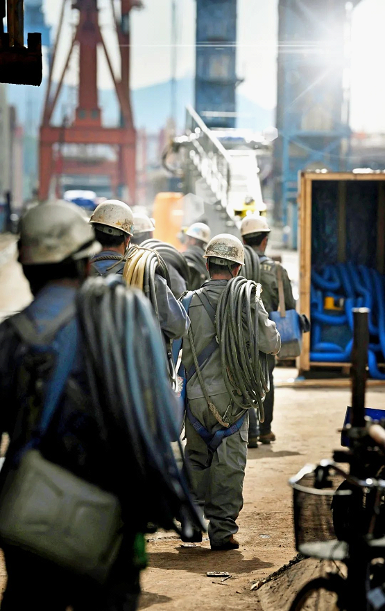在悶熱且狹小的機艙內,一個簡單的動作,難度系數都要成倍增加,考驗的不僅是船舶電工的體力,還有毅力。