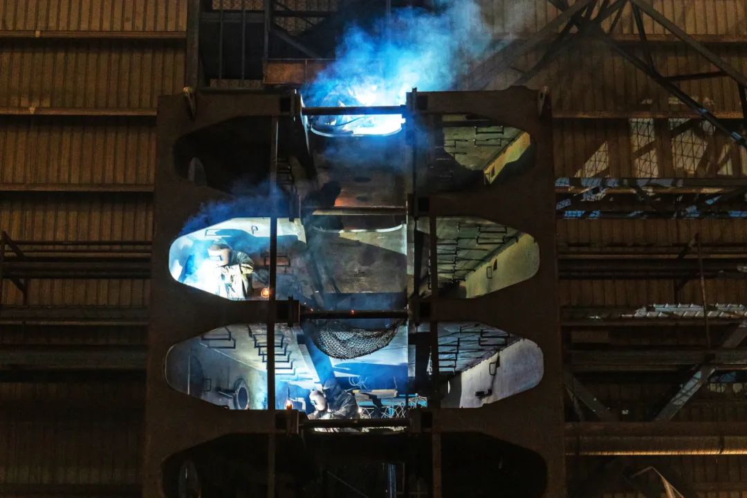 大船集團(tuán)全體干部職工統(tǒng)一思想,凝心聚力,堅(jiān)守本職擔(dān)當(dāng),積極主動(dòng)作為,爭分奪秒,奮力沖刺。其中FPSO-8項(xiàng)目是大船集團(tuán)建造的第七艘FPSO。今年以來,F(xiàn)PSO-8項(xiàng)目提前計(jì)劃節(jié)點(diǎn),順利實(shí)現(xiàn)鋪底,并完成了連續(xù)六個(gè)總段的塢內(nèi)合攏。