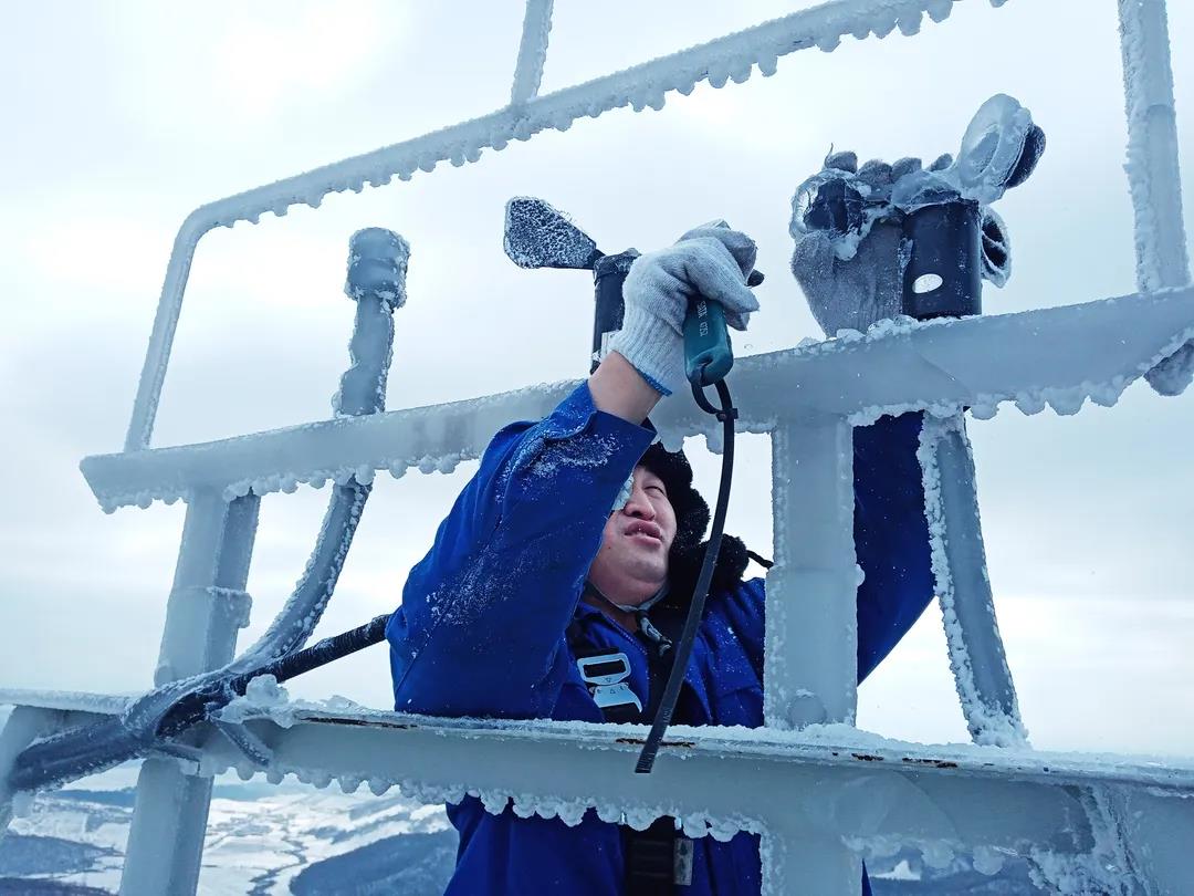 在遼寧昌圖天橋山項(xiàng)目,面對大雪降溫天氣,全體員工為保障風(fēng)電機(jī)組安全正常運(yùn)行,合力推車前往機(jī)位搶修。為恢復(fù)機(jī)組正常運(yùn)行,運(yùn)維人員人工給風(fēng)速風(fēng)向儀除冰。風(fēng)雪之中,總有人穿風(fēng)沐雪,在逆行在奮戰(zhàn),他們浴“雪”奮戰(zhàn),卻說高處能勝寒。