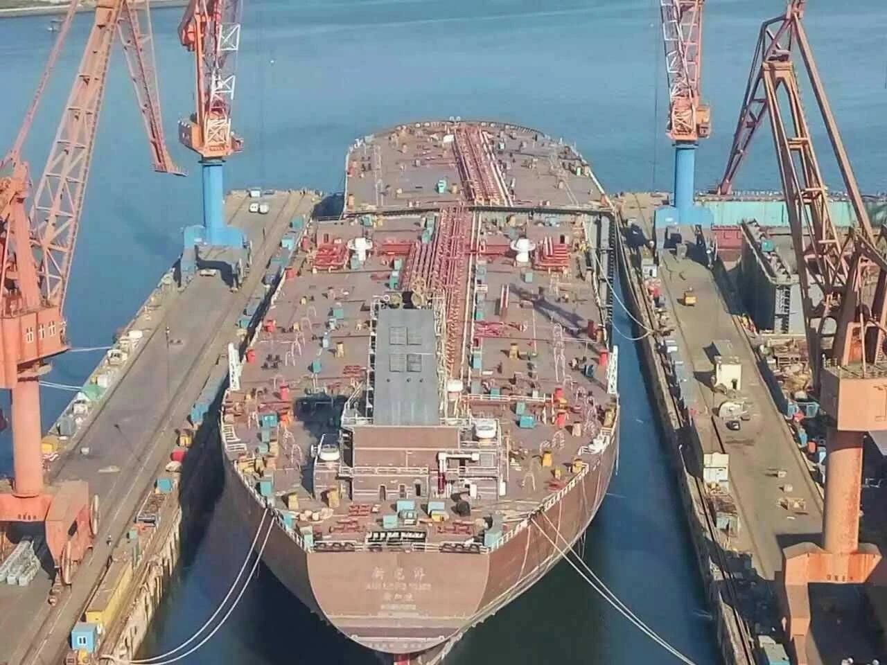 2024年廣州,如今,龍穴基地建造的華南地區最大原油船32萬噸超大型原油船“凱桂”號、“凱粵”號。