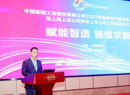 12月9日,中國(guó)船舶工業(yè)股份有限公司2022年度船海產(chǎn)融發(fā)展高峰論壇暨上海上市公司協(xié)會(huì)上市公司之家揭牌儀式在上海舉行。論壇旨在搭建產(chǎn)業(yè)與金融交流合作平臺(tái),聚合船舶工業(yè)產(chǎn)業(yè)頭部資源,洞悉行業(yè)賽道一線信息,深化金融助力實(shí)體經(jīng)濟(jì)發(fā)展,推動(dòng)行業(yè)創(chuàng)新驅(qū)動(dòng)。中國(guó)船舶集團(tuán)黨組成員、總會(huì)計(jì)師賈海英,上海上市公司協(xié)會(huì)會(huì)長(zhǎng)、上港集團(tuán)黨委書(shū)記、董事長(zhǎng)顧金山出席論壇并致辭。中國(guó)船舶集團(tuán)黨組成員、副總經(jīng)理,中國(guó)船舶股份董事長(zhǎng)盛紀(jì)綱發(fā)表主旨演講。