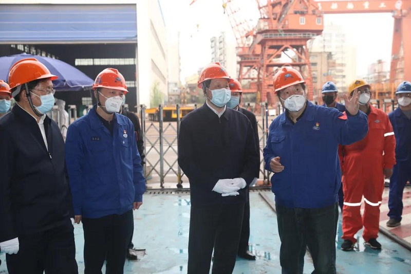 ????3月25日,湖北省委書記應(yīng)勇到中國船舶集團有限公司所屬武船集團調(diào)研復(fù)工復(fù)產(chǎn)、加快發(fā)展情況。省委常委、武漢市委書記王忠林,副省長曹廣晶及省委、省政府有關(guān)部門負責(zé)同志參加調(diào)研。
