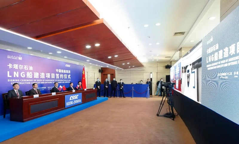 ????2019年4月22日,卡塔爾石油委托其子公司卡塔爾天然氣公司就“百艘LNG船計劃”進行招標。中國船舶集團高度重視、精心準備、積極溝通,組織旗下滬東中華聯合中國船舶工業(yè)貿易有限公司(CSTC)全力推進各項競標工作。經過一年的不懈努力和先后四輪談判,中國船舶集團最終在激烈的國際競爭中勝出,為卡塔爾石油建造下一代LNG船,彰顯了中國船舶集團在高端海洋裝備領域的強大實力。此次簽約也將為中國船舶集團完成全年目標任務奠定堅實基礎。