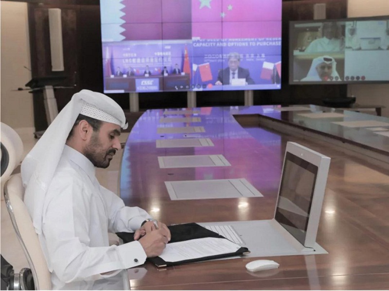 ????雖然全球疫情持續(xù)蔓延,但“一帶一路”建設的步伐并未停滯。4月22日,中國船舶集團有限公司與卡塔爾石油公司在中國北京、上海及卡塔爾多哈三地以“云簽約”方式聯合簽署“中國船舶—卡塔爾石油液化天然氣(LNG)船建造項目”協議,所涉訂單總金額超過200億元人民幣。這是卡塔爾天然氣項目首批訂單,也是中國船企迄今承接的金額最大的造船出口訂單。中國船舶集團董事長雷凡培、卡塔爾能源事務部長兼卡塔爾石油總裁薩阿德?謝里達?阿爾卡比出席簽約儀式并分別代表雙方在協議文本上簽字,中國船舶集團副總經理孫偉主持簽約儀式,卡塔爾天然氣公司首席執(zhí)行官卡利德?阿爾?塞尼、卡塔爾石油商務開發(fā)執(zhí)行副總裁賈西姆?阿爾馬拉祖齊等出席簽約儀式。