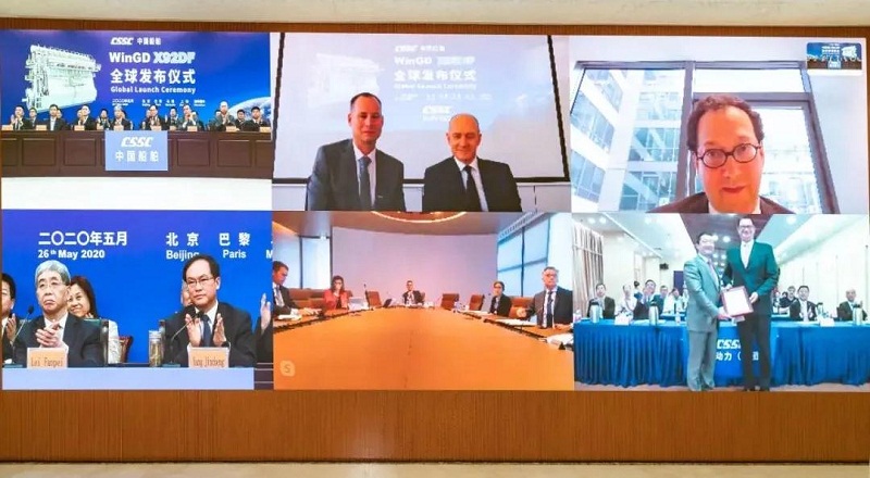 ????發布儀式采用視頻形式,在中國北京、上海,法國巴黎、馬賽和瑞士溫特圖爾全球五地遠程連線同步舉行。在各方嘉賓見證下,WinGD X92DF通過BV(法國船級社)型式認可,雷凡培宣布向全球發布。