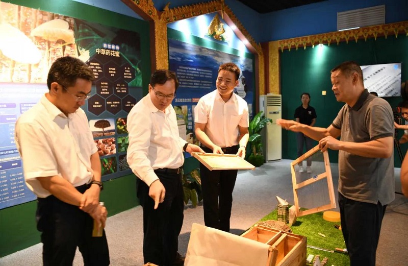 楊金成一行參觀了滇云蜜語公司生產(chǎn)線、品控中心等地,了解了產(chǎn)業(yè)扶貧基金使用和蜂蜜事業(yè)帶動脫貧情況,對滇云蜜語公司帶動村集體經(jīng)濟(jì)發(fā)展、促進(jìn)檔卡戶脫貧增收等模式給予充分肯定;在磨憨鎮(zhèn)尚勇村南坡村小組檢查了援建的茶葉初制所項目,并慰問有關(guān)建檔立卡戶,鼓勵他們增收致富;在中國船舶磨憨尚岡希望小學(xué)調(diào)研了教學(xué)樓、標(biāo)準(zhǔn)塑膠運(yùn)動場等幫扶項目及教學(xué)質(zhì)量提升情況,勉勵孩子們努力學(xué)習(xí)、堅定志向,將來回報家鄉(xiāng)和社會;對物資公司所屬勐臘公司開展貿(mào)易業(yè)務(wù)和消費(fèi)扶貧情況以及昆船公司智慧停車場等項目情況進(jìn)行了調(diào)研。