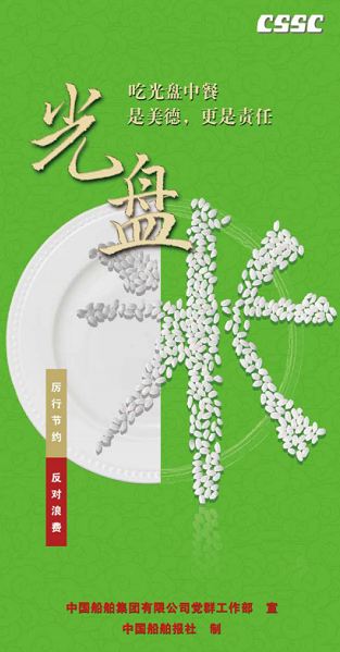 珍惜糧食,從我做起。連日來,中國船舶集團各成員單位認真貫徹落實習近平總書記重要指示精神,按照集團公司部署要求,采取各種措施,通過發放倡議書、成立志愿服務隊、光盤有獎勵等方式,加強宣傳教育,培養節約習慣,杜絕“舌尖上的浪費”。中國船舶集團旗下江南造船、大船集團、渤船集團、武船集團、廣船國際、中船澄西等單位積極開展“光盤行動”,講究用餐禮儀,踐行節約理念;七一三所發放“制止餐飲浪費,培養節約良好習慣”倡議書,倡導干部職工切實把節約意識轉化為自覺行動;七一八所安排專人檢查剩菜剩飯情況,鼓勵就餐職工勤拿少取,避免浪費糧食;七二六所工會舉行“節儉樹美德,光盤你我他”的主題活動,旨在切實培養全體職工勤儉節約的習慣,減少餐飲浪費現象……通過開展這些活動,中國船舶集團廣大干部職工節約糧食的意識得到進一步強化,在日常生活中切實做到厲行節約、反對浪費。