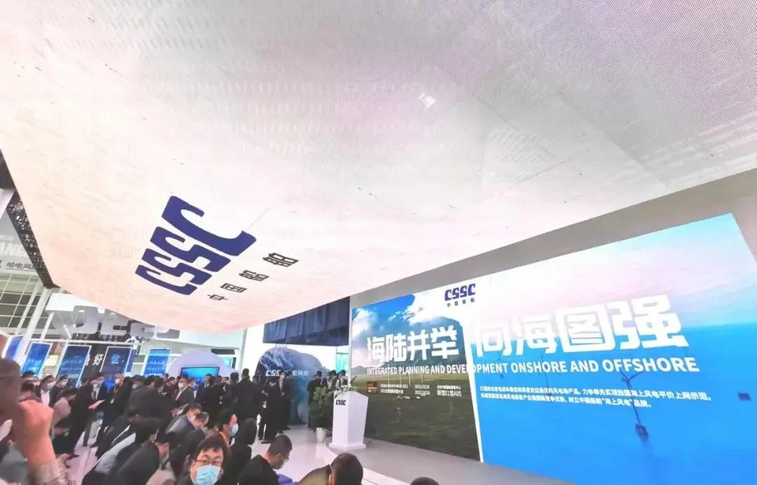 此次展會(huì)上,中國船舶集團(tuán)以“創(chuàng)新引領(lǐng)、綠色發(fā)展強(qiáng)使命,海陸并舉、向海圖強(qiáng)顯擔(dān)當(dāng)”為主題,在900平方米的歷屆風(fēng)能展最大展臺(tái)上,按照建設(shè)開發(fā)、整機(jī)制造、關(guān)鍵核心部件和產(chǎn)業(yè)配套四個(gè)版塊分區(qū)展出。