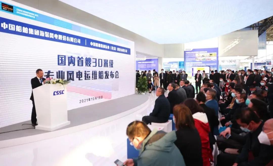 在風(fēng)能展上,中國海裝與遠(yuǎn)舟科技聯(lián)合設(shè)計(jì)制造的國內(nèi)首艘30米級(jí)專業(yè)風(fēng)電運(yùn)維船發(fā)布,最大裝載38噸,可抗浪高4米,可搭乘12名運(yùn)維人員和6名船員,具有高強(qiáng)度、輕重量的結(jié)構(gòu)特點(diǎn)和優(yōu)良的安全性、快速性、防腐性、耐波性等,將于今年正式投運(yùn)。