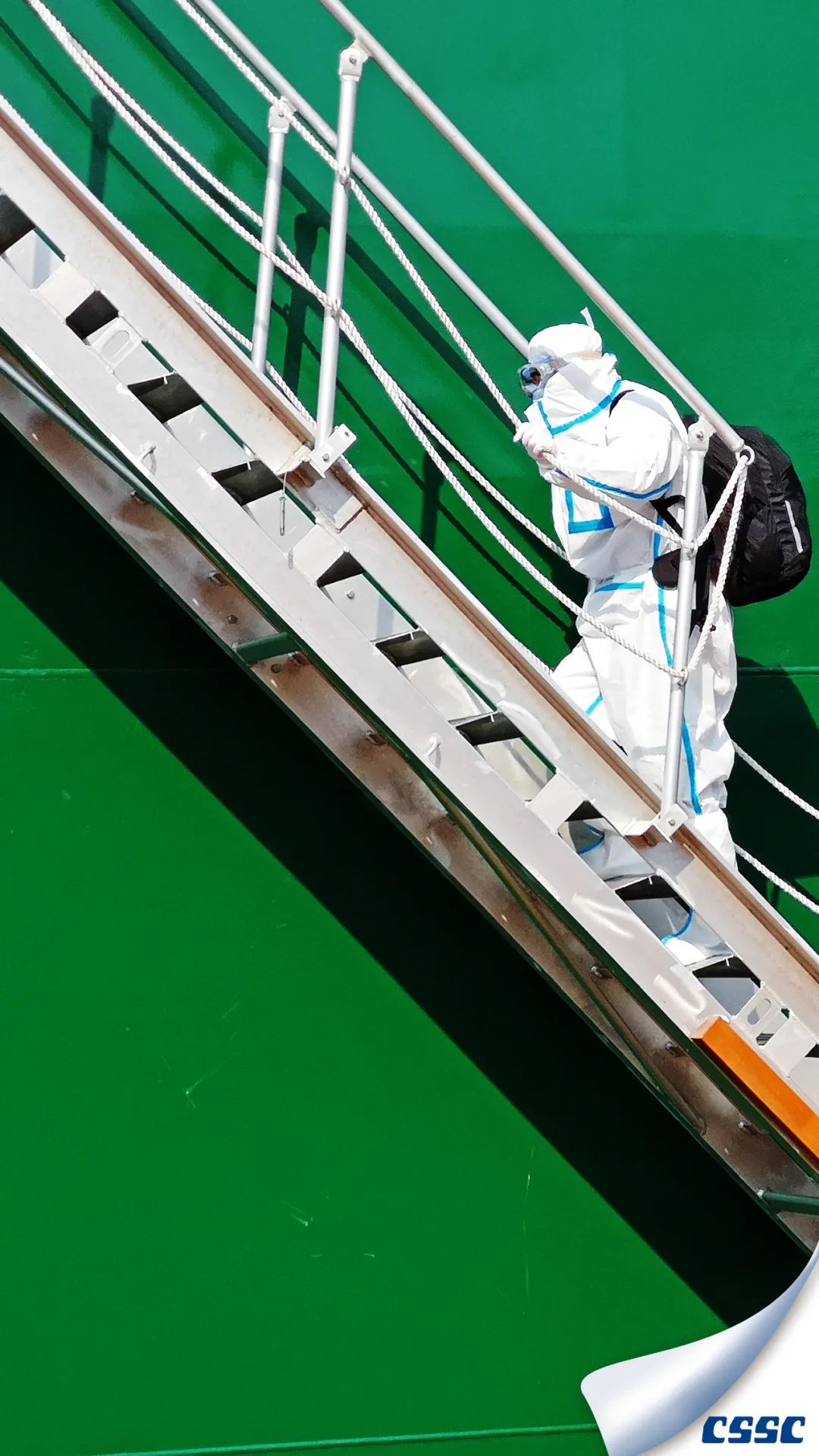 該片拍攝于中船澄西金山塢內MARITIME VANESSA (HONGKONG) 船進塢油漆涂裝和螺旋槳修理作業時,創作主要利用船舶與現場作業人物大小形成超大反差,以獨特的視角展現了涂裝后新船的雄偉和迷人色彩。