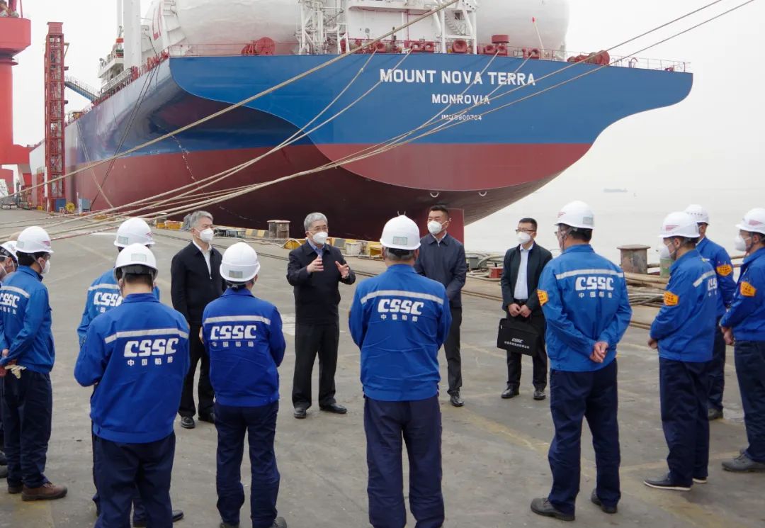 5月15日,中國船舶集團(tuán)有限公司黨組書記、董事長雷凡培到集團(tuán)公司旗下上海外高橋造船有限公司調(diào)研疫情防控和復(fù)工復(fù)產(chǎn)工作。中國船舶集團(tuán)黨組成員、副總經(jīng)理孫偉參加調(diào)研。