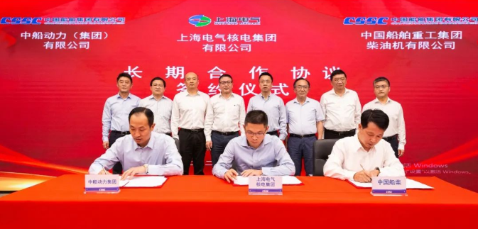 2022年9月30日,中國(guó)船舶集團(tuán)旗下中船動(dòng)力(集團(tuán))有限公司、中國(guó)船舶重工集團(tuán)柴油機(jī)有限公司與上海電氣集團(tuán)旗下上海電氣核電集團(tuán)有限公司在上海簽署了長(zhǎng)期合作協(xié)議。中國(guó)船舶集團(tuán)黨組成員、副總經(jīng)理盛紀(jì)綱,上海電氣集團(tuán)黨委委員、副總裁金孝龍出席簽約儀式。