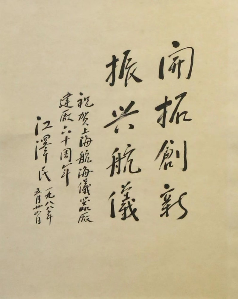 江澤民同志曾給系統工程研究院、中船電科旗下中船航海題詞。1988年5月,為慶祝上海航海儀器廠建廠60周年,江澤民同志寫下“開拓創新,振興航儀”以示祝賀。