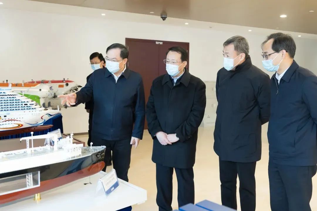 中國船舶集團總部于2021年12月遷駐上海,去年經營業績再創新高。在溫剛、楊金成的陪同下,龔正察看了中國船舶集團重點船舶產品模型,深入了解中國船舶集團深化科技創新、實施重大項目,對標國際先進、夯實技術基礎等方面情況。