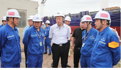 6月8日下午、9日上午,在龍穴基地調(diào)研期間,溫剛走進(jìn)造修船生產(chǎn)現(xiàn)場,登上多型重點(diǎn)在建船舶,察看車間、船塢、船臺等生產(chǎn)區(qū)域,與企業(yè)班子成員深入交流,聽取了黃埔文沖、廣船國際產(chǎn)業(yè)發(fā)展、深化改革、科技創(chuàng)新、人才隊(duì)伍建設(shè)、精益管理、黨的建設(shè)等有關(guān)情況的匯報(bào)。