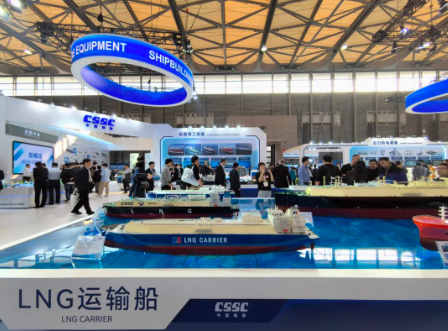 以模型展示的LNG產業鏈相關產品包括:MARK Ⅲ FLEX薄膜艙、17.4萬立方米浮式液化天然氣存儲及再氣化裝置(FSRU)、14000立方米江海聯運型LNG運輸加注船、18600立方米LNG加注船、8500立方米LNG加注船、350兆瓦 LNG發電船。