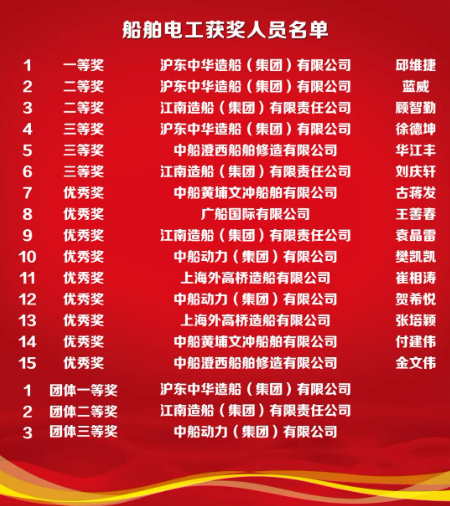 本次競賽項目既有船舶行業(yè)主體工種——船舶電工,又有現(xiàn)代制造業(yè)重要工種——加工中心操作調(diào)整工。競賽由滬東中華、707所承辦,上海公司協(xié)助負責(zé)保密監(jiān)督工作;競賽首次全部采用第三方裁判,進一步提升執(zhí)裁專業(yè)性和公正性。來自40家成員單位共計120名選手同臺角逐,最終評選出個人及團體一、二、三等獎和個人優(yōu)秀獎,優(yōu)秀組織獎等獎項。參賽選手們相互學(xué)習(xí)交流、深入切磋技藝,展現(xiàn)了中國船舶技能人才頑強拼搏、追求卓越的良好精神面貌。