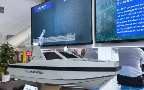 七一六所牽頭聯(lián)合行業(yè)內(nèi)優(yōu)勢(shì)單位共同研制的我國大型無人作戰(zhàn)艇“虎鯨號(hào)”全球首次公開亮相。“虎鯨號(hào)”總長58米、型寬23米、型深4米、續(xù)航能力超4000海里,是一型高速隱身的500噸級(jí)水面無人作戰(zhàn)裝備。