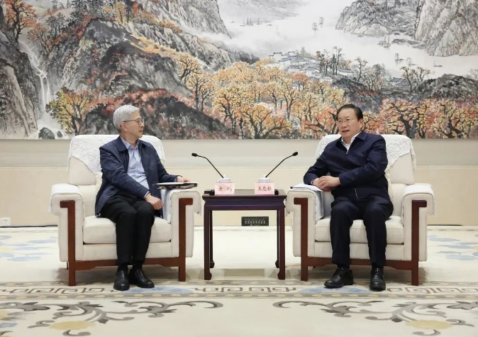 4月12日,中國船舶集團有限公司黨組書記、董事長徐鵬在武漢拜訪湖北省委書記、省人大常委會主任王忠林。雙方圍繞深化戰略合作、共謀發展新篇進行深入交流并達成共識。湖北省委常委、武漢市委書記郭元強,省委常委、秘書長彭勇,副省長程用文,中船集團黨組成員、副總經理彭原璞參加會談。