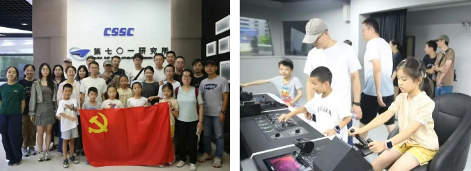 七〇一所組織開展親子活動,邀請員工家屬、子女周末到所區參觀,了解七〇一所科研報國的創業歷程。活動期間,小朋友們在綜合駕控實驗室動手操作,當了一回“小船長”,并觀看了愛國主義教育電影《南京照相館》。