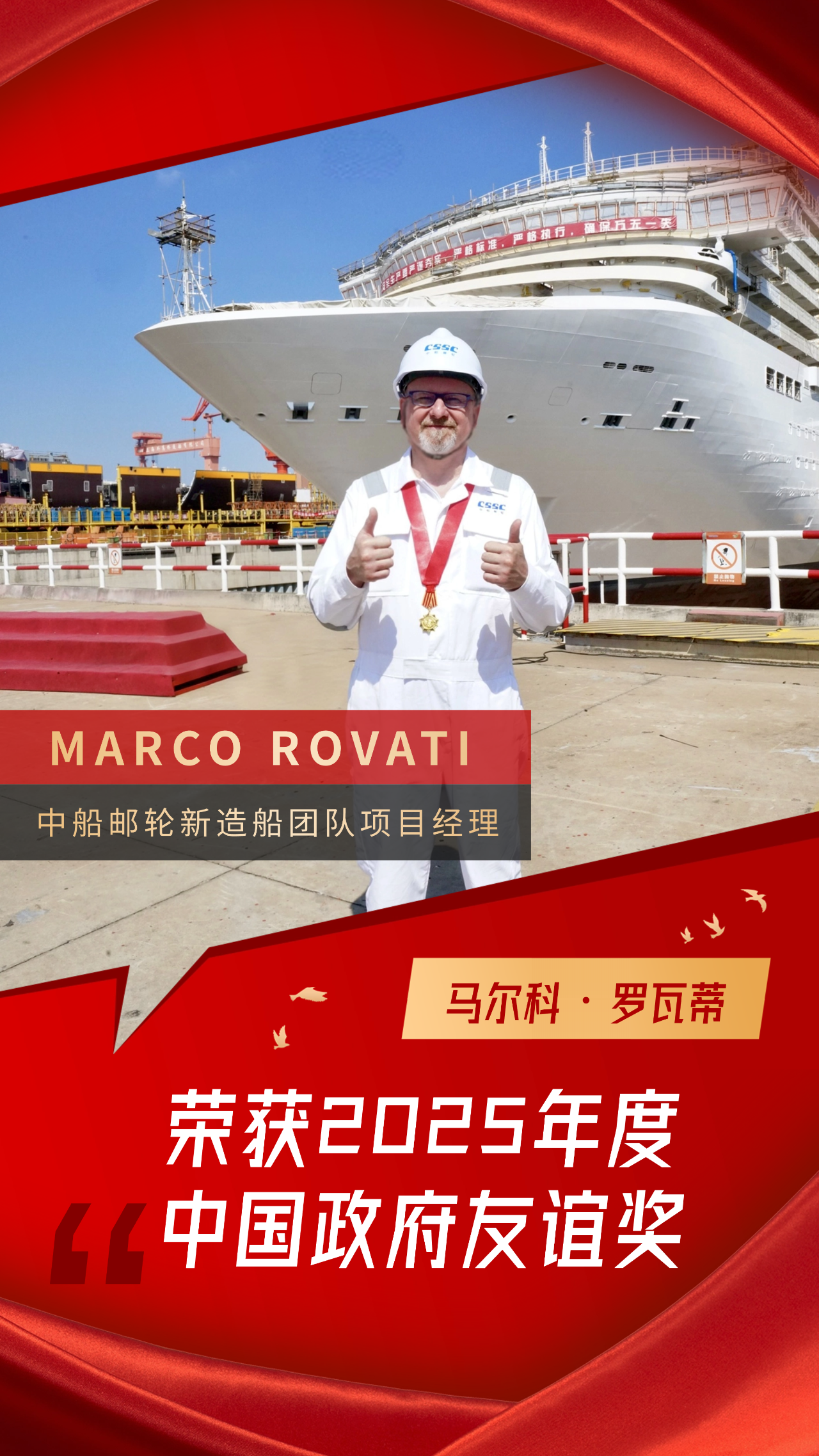 MARCO ROVATI是一位出生于1967年的克羅地亞籍郵輪工程專家,擁有超過三十年的郵輪新造船經驗。在獲得中國政府友誼獎后,MARCO ROVATI說:“中國政府友誼獎是我職業(yè)生涯中獲得的最重要的榮譽,對我而言具有非凡意義。這份獎項不僅是對我過去工作的認可,更是對我未來的激勵。我將繼續(xù)為中國郵輪產業(yè)的發(fā)展貢獻自己的力量。”