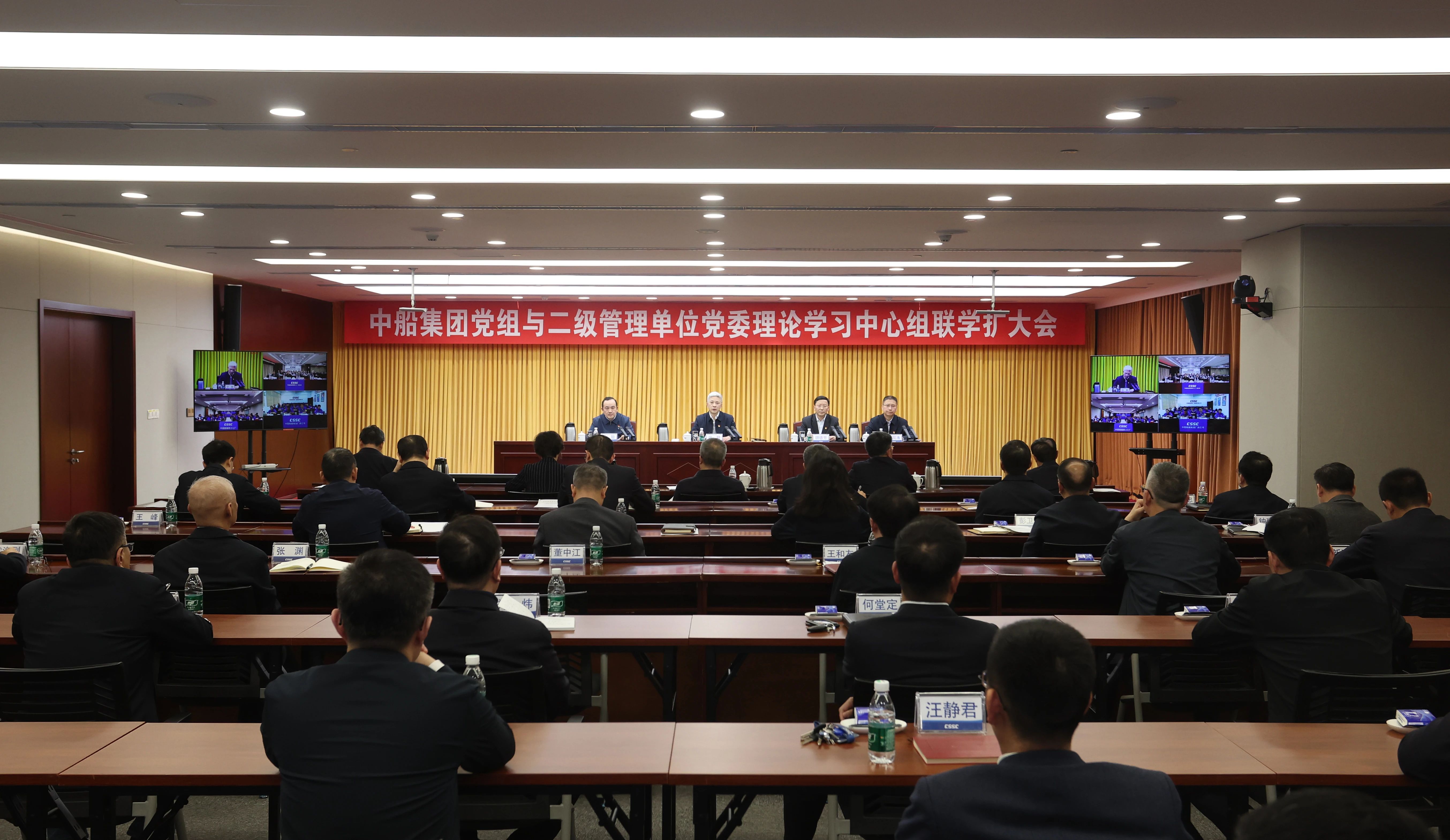3月14日,中國船舶集團(tuán)有限公司召開黨組與二級(jí)管理單位黨委理論學(xué)習(xí)中心組聯(lián)學(xué)擴(kuò)大會(huì),傳達(dá)學(xué)習(xí)全國兩會(huì)精神。中船集團(tuán)黨組書記、董事長徐鵬主持會(huì)議并講話,集團(tuán)公司黨組理論學(xué)習(xí)中心組成員參會(huì)。