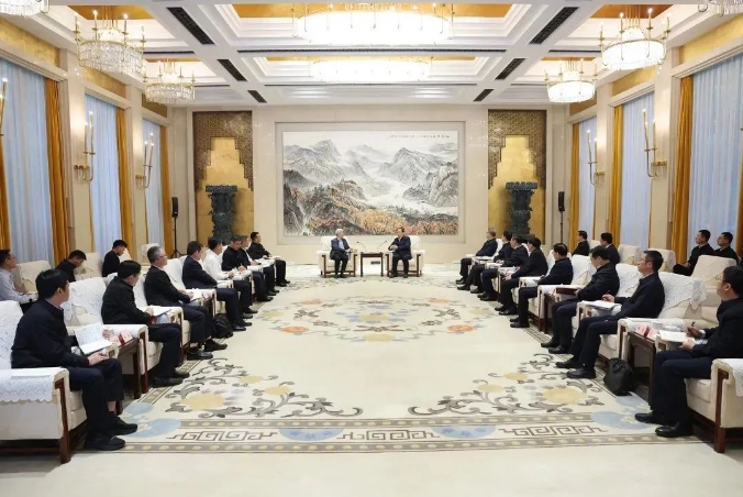 4月12日,中國船舶集團有限公司黨組書記、董事長徐鵬在武漢拜訪湖北省委書記、省人大常委會主任王忠林。雙方圍繞深化戰略合作、共謀發展新篇進行深入交流并達成共識。湖北省委常委、武漢市委書記郭元強,省委常委、秘書長彭勇,副省長程用文,中船集團黨組成員、副總經理彭原璞參加會談。