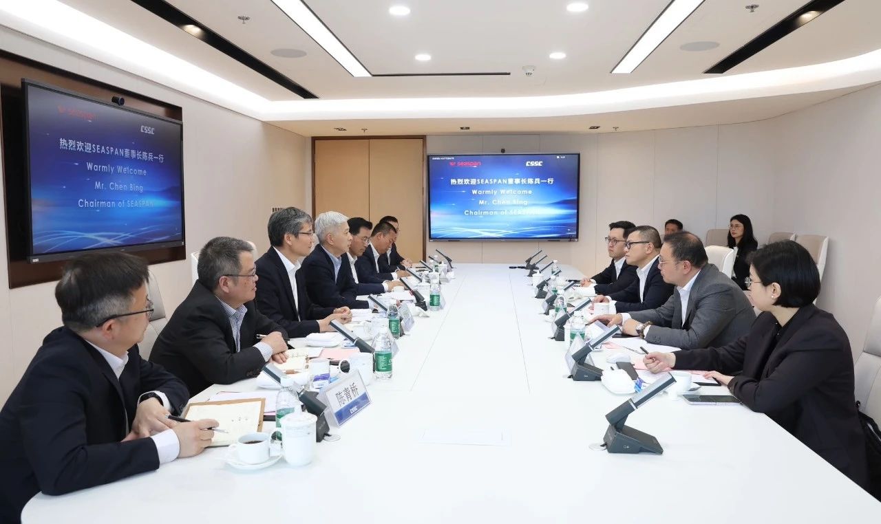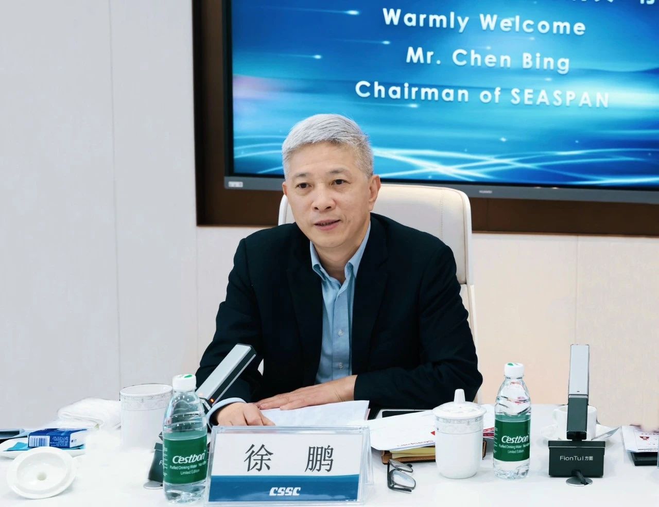 徐鵬對(duì)陳兵一行的來訪表示歡迎,并感謝Seaspan公司對(duì)中船集團(tuán)的長(zhǎng)期信任與支持。徐鵬表示,中船集團(tuán)將持續(xù)提升自身綜合能力,努力為客戶提供更優(yōu)質(zhì)的產(chǎn)品和服務(wù)。Seaspan公司是全球最大的獨(dú)立集裝箱船租賃船東公司,與中船集團(tuán)在長(zhǎng)期合作中結(jié)下了深厚友誼。未來,希望雙方建立常態(tài)化溝通交流機(jī)制,在船舶建造與升級(jí)改造、國(guó)際船海市場(chǎng)拓展、船舶全生命周期運(yùn)維、綠色能源開發(fā)等方面持續(xù)深化進(jìn)一步合作,共同為行業(yè)持續(xù)健康發(fā)展作出應(yīng)有貢獻(xiàn)。