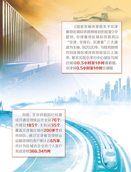 近年來(lái),北京鐵路局先后開行了京津冀貨物快運(yùn)列車、特快、快速和電商班列,打造了一批現(xiàn)代物流基地,提升改造了一批集裝化設(shè)施,為區(qū)域經(jīng)濟(jì)發(fā)展提供了強(qiáng)大運(yùn)力支撐和物流保障。