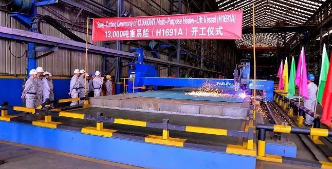 ????11月12日,滬東中華造船(集團)有限公司為中國船舶(香港)航運租賃有限公司建造的系列13000噸重吊船中的6號船開工。該船由上海船舶研究設計院設計,總長149.99米,型寬25.6米,型深13.5米,設計吃水6.8米,結構吃水8.3米,入級DNV GL。 ????滬東中華將嚴格按照建模2.0的要求,以“嚴、緊、細、實”的工作作風,強化風險管控保質量過硬,注重細節管理促效率提升,建造優質船舶。