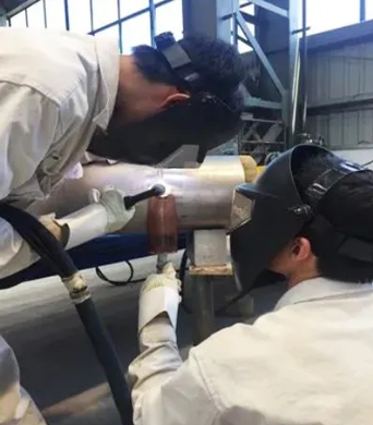 鈦合金材料具有良好的耐高溫、耐腐蝕、耐磨損、耐疲勞、輕量化特點,作為船用材料有著廣闊的應(yīng)用前景。2017年,集團公司旗下單位曾成立專項組集中攻關(guān)鈦合金管的制造工藝,周蔚慈就是參與者之一。雖然鈦合金材料優(yōu)點突出,但焊縫塑性低、合金導(dǎo)熱性比一般鋼鐵差4倍,且沒有經(jīng)驗參考,這為焊接工藝的制訂帶來極大挑戰(zhàn)。