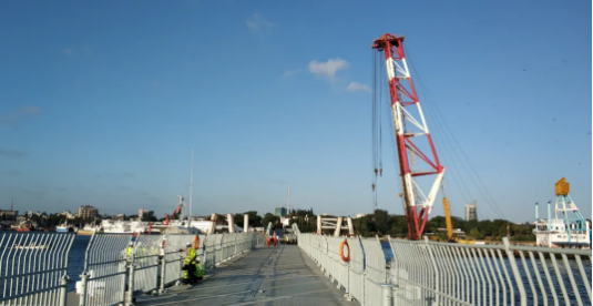 日前,中國船舶集團旗下中船應急承建的肯尼亞蒙巴薩人行浮橋正式建成通行。蒙巴薩作為肯尼亞第二大城市,是全國重要工商業中心,其港口為非洲東海岸最大海港。浮橋的建成,使蒙巴薩主島和周邊地區兩岸居民通行時間由原來的45分鐘縮短至10分鐘,極大方便了當地居民出行。同時,浮橋通航孔的設計可滿足萬噸大型船舶暢通進出蒙巴薩港口。