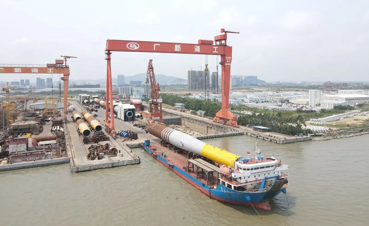 “國家電投揭陽神泉—400MW 海上風電項目”首批海上風電單樁中的23號樁交付發運,該項目由中國船舶集團旗下黃埔文沖下屬文船重工承建。
