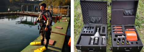 中國船舶集團七一五所超聲公司研制的蛙人水下定位監測系統是一型便攜、快速布放的水聲定位產品,突破了湖泊、海洋、溶洞等不同水域定位誤差機理分析、淺水環境下聲傳播多途效應的信號提取及處理算法等關鍵技術,能夠實時顯示水下蛙人位置(距離、方位和深度)和運動軌跡,緊急情況下蛙人可通過SOS鍵進行實時報警,為陸上指揮中心提供決策依據,實現水下救援數字化管控。該監測系統可廣泛用于日常訓練、水域救援和物品打撈、船舶事故處置和礦山透水救援等具體場景。
