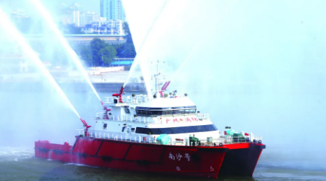 2010年12月28日,廣船國際為南沙區建造的“南沙號”消防船投入使用。“南沙號”消防船總長46米,型寬15米,排水量達到680噸,航速可達32.4公里/小時,共設置有6門水炮。其中,2門主炮射程可達到150米,4門副炮射程可達到130米;還設置了全船水幕保護系統,在火災現場可有效保護自身安全。“南沙號”消防船是當時國內最大雙體專勤消防船,大大增強了對船舶火災、石化碼頭、油庫火災的撲救能力。