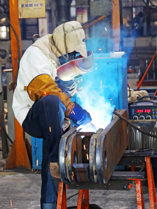 在38℃的高溫下,“蒙面焊將”堅(jiān)守工作崗位,用手中的焊槍把滿(mǎn)身的汗水化為激情與焊花一起綻放。