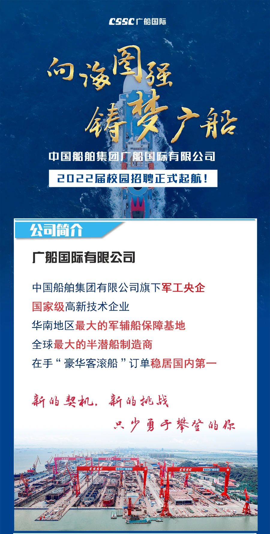 中國船舶集團旗下廣船國際、中船動力集團校園招聘啟事