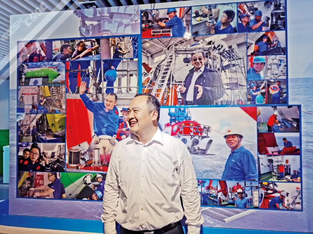 國企開放日期間, “奮斗者”號總設計師葉聰帶領眾多央媒記者走進中國船舶、深入船人一線,感受大國重器的張力!在展覽室的背景墻前,他縱然一笑,撒下江湖傳說。