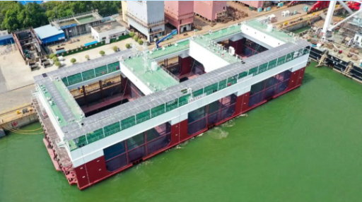 中國船舶集團旗下廣船國際為海南省建造了首座半潛式深遠海智能養殖旅游平臺“普盛海洋牧場1號” 。