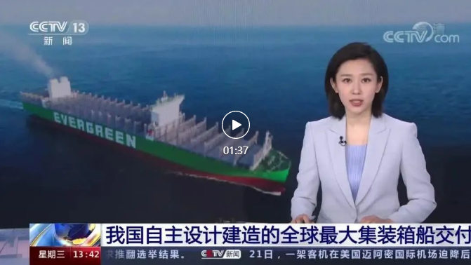今天,中國首艘全球最大24000TEU超大型集裝箱船在中國船舶集團旗下滬東中華簽字交付,比最大航母還長,甲板面積相當于3.5個標準足球場,最大堆箱層數可達25層,相當于22樓的高度……