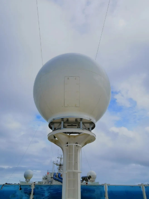 站在煙囪下面往船艏方向看,正對(duì)著1個(gè)大球,前前后后,愛達(dá)·魔都號(hào)的頂部共有5個(gè)同款大球,它們分別用于收發(fā)來自衛(wèi)星的電視和網(wǎng)絡(luò)信號(hào),船上“5G+WIFI”網(wǎng)絡(luò)系統(tǒng)和艙室的IPTV就是在它們的加持下才得以實(shí)現(xiàn)。