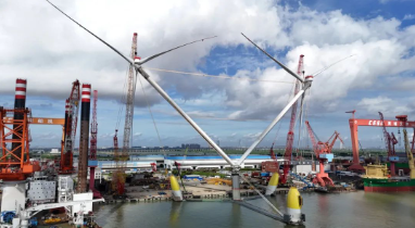 7月3日,由中國船舶集團旗下黃埔文沖建造的漂浮式風(fēng)電平臺“明陽天成號”(OceanX)完成吊裝。