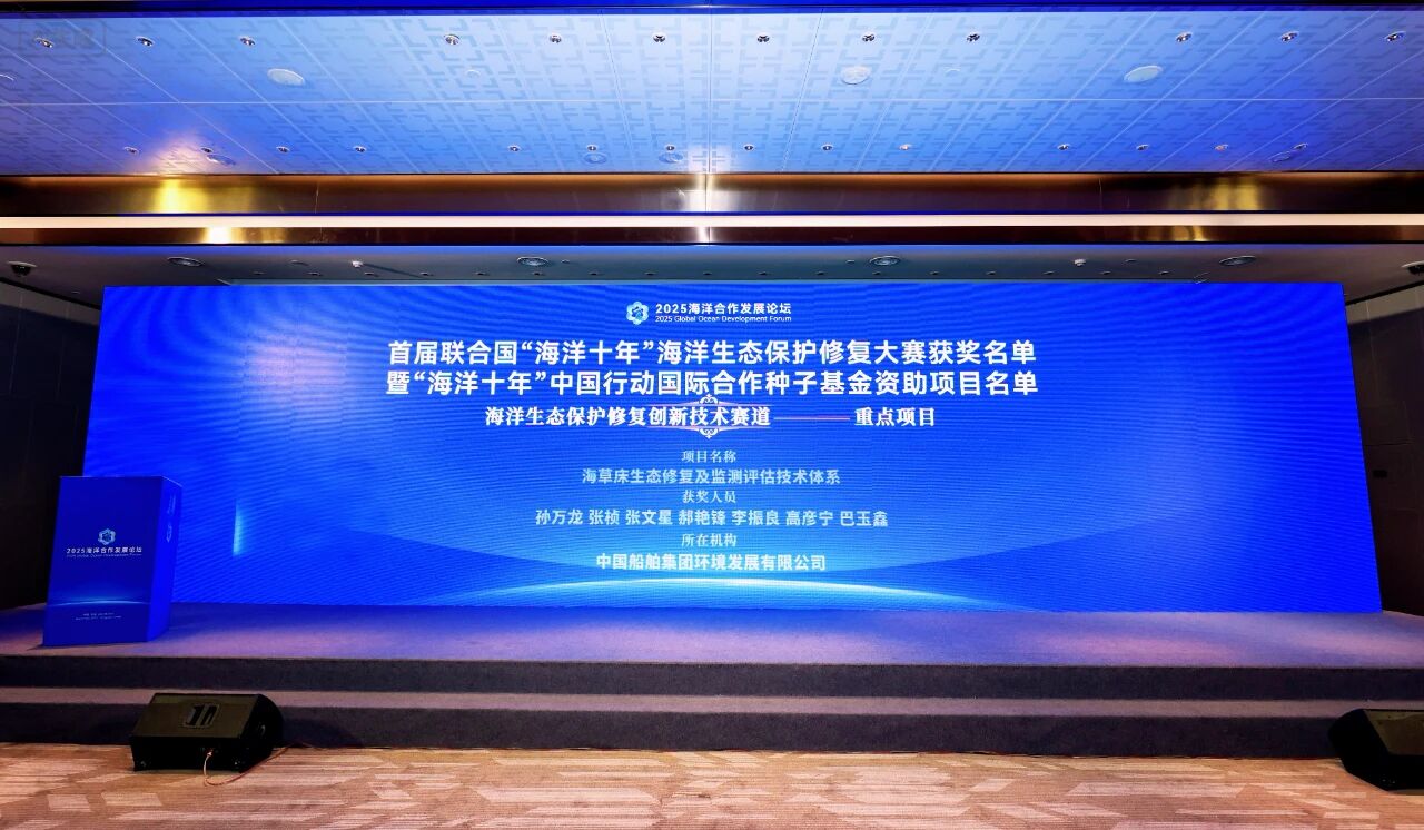 近日,中國船舶集團(tuán)環(huán)境發(fā)展有限公司(以下簡稱“中船環(huán)境”)自主研發(fā)的《海草床生態(tài)修復(fù)及監(jiān)測評估技術(shù)體系》項(xiàng)目,在首屆聯(lián)合國“海洋十年”海洋生態(tài)保護(hù)修復(fù)大賽中脫穎而出,榮獲“海洋十年”中國行動國際合作種子基金資助重點(diǎn)項(xiàng)目。中船環(huán)境也是唯一獨(dú)立自主完成海洋生態(tài)保護(hù)修復(fù)創(chuàng)新技術(shù)項(xiàng)目的企業(yè)代表。