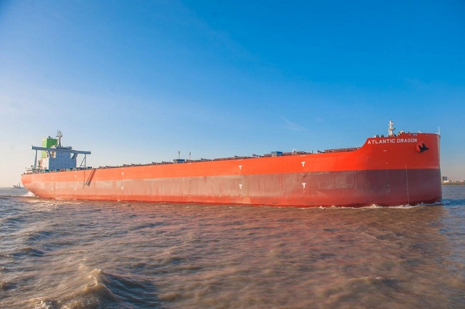 ????同日,中國(guó)船舶集團(tuán)所屬外高橋造船建造的21萬(wàn)噸散貨船“ATLANTIC DRAGON”輪(船號(hào)H1485)和“MARAN FIDELITY”輪(船號(hào)H1453)順利交付。這是外高橋造船自主設(shè)計(jì)的21萬(wàn)噸紐卡斯?fàn)栃蜕⒇洿謩e入級(jí)法國(guó)船級(jí)社和美國(guó)船級(jí)社。紐卡斯?fàn)栃蜕⒇洿峭飧邩蛟齑拿餍钱a(chǎn)品之一。外高橋造船已實(shí)現(xiàn)了產(chǎn)品的持續(xù)升級(jí)換代,船舶技術(shù)性能始終保持全球領(lǐng)先水平。這一代紐卡斯?fàn)栃彤a(chǎn)品的實(shí)測(cè)航速均明顯好于合同保證航速,深得國(guó)內(nèi)外船東客戶的肯定。