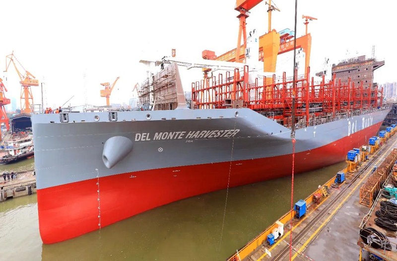 黃埔文沖建造的600FEU系列全冷藏集裝箱船3號船順利出塢