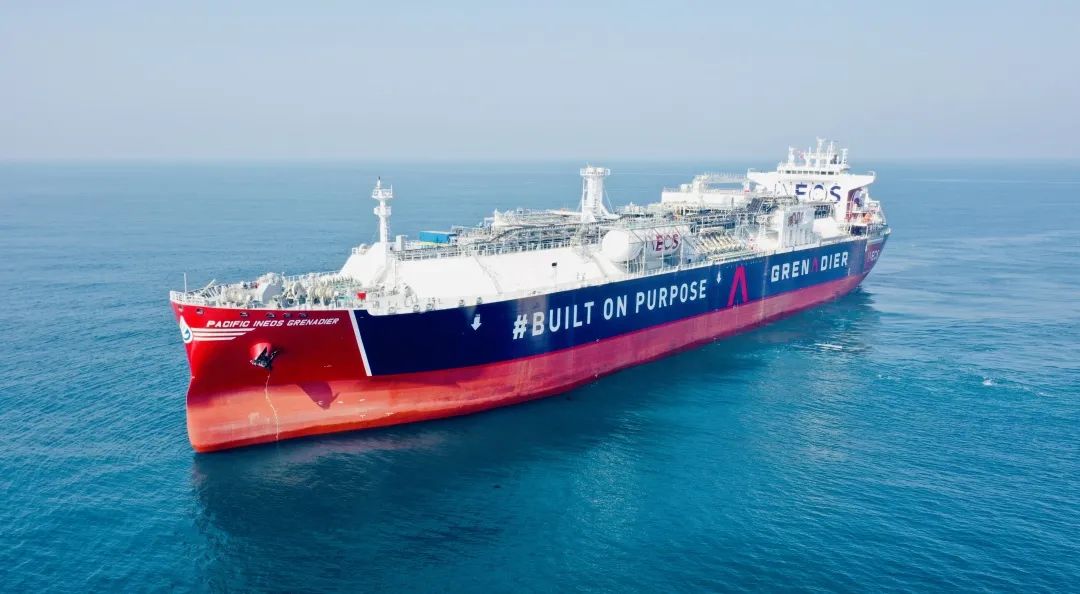 5月16日,中國船舶集團(tuán)旗下江南造船為浦銀租賃和山東海洋集團(tuán)下屬太平洋氣體船(香港)控股有限公司(PACIFIC GAS)建造的99000立方米B型艙超大型乙烷運(yùn)輸船(VLEC)“PACIFIC INEOS GRENADIER”號(hào)交付。