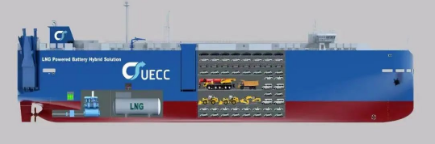 3600車汽車運(yùn)輸船是江南造船建造采用浮船塢下水的全球第一批“LNG雙燃料+電池混合動(dòng)力+智慧能源管理系統(tǒng)”的汽車運(yùn)輸船。該型船涵蓋如雙燃料+電池混合動(dòng)力及EMS能源管控系統(tǒng)等世界一流的所有滾裝船技術(shù)和系統(tǒng)。