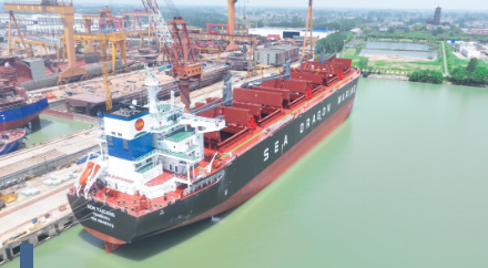 5月15日,中國船舶集團旗下中船澄西為交銀金融租賃有限責任公司建造的64000噸木屑船“SDM TAICANG”號較合同交船期提前77天在揚州順利交付。