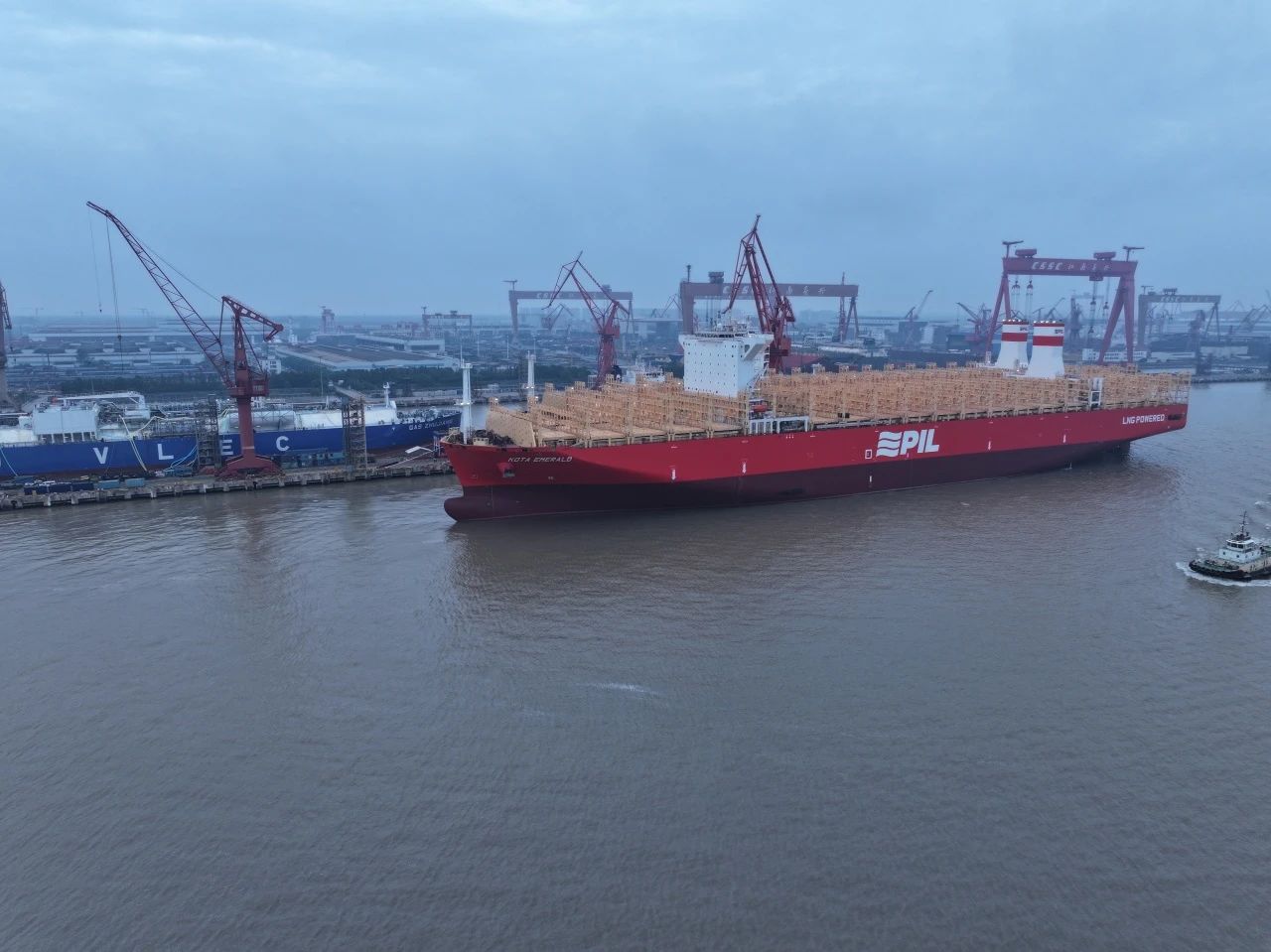 10月15日,中國船舶集團(tuán)旗下江南造船聯(lián)合中船貿(mào)易為太平船務(wù)建造的14000TEU液化天然氣(LNG)雙燃料動(dòng)力系列集裝箱船首制船“KOTA EAGLE(鷹城)”號(hào)和2號(hào)船“KOTA EMERALD(翠城)”號(hào)同日命名,其中“KOTA EAGLE(鷹城)”號(hào)于當(dāng)日簽字交付。